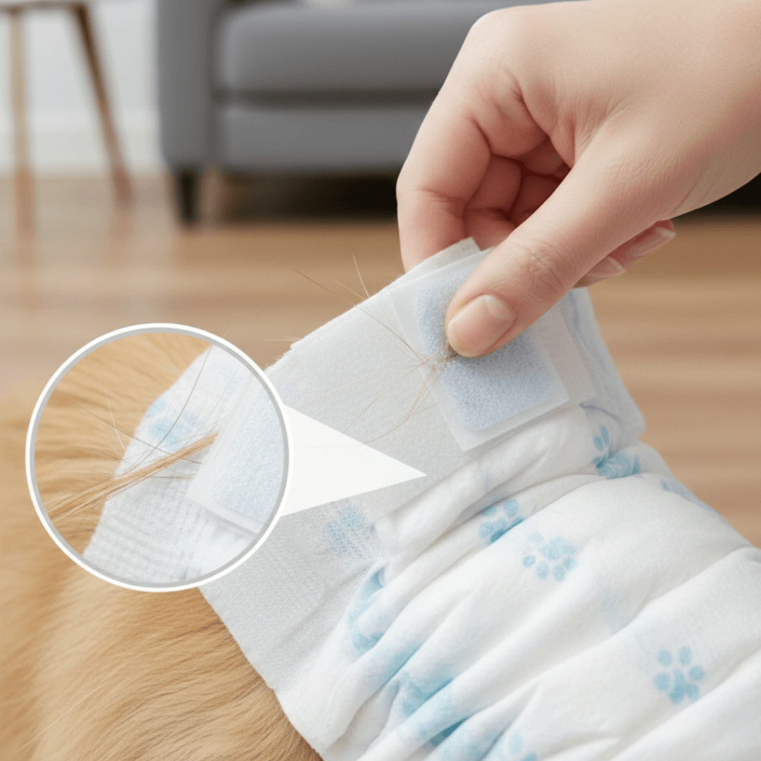 We use "Cloud-Touch" breathable materials and fur-friendly fasteners that don't pull or snag. However, for hygiene, we recommend changing the wrap as soon as it's soiled and giving your pup some "naked time" each day to let the skin breathe.