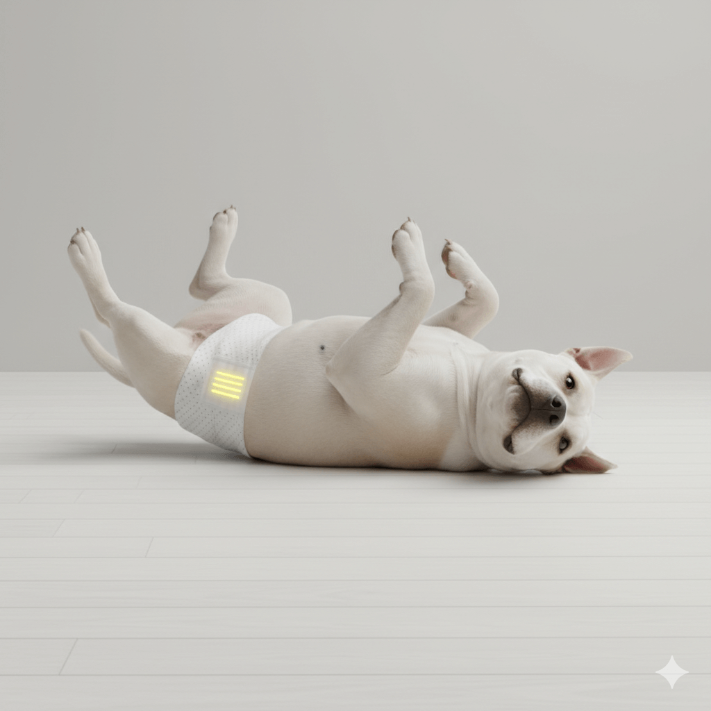 We designed the GentleWrap™ Pro to look like a sleek accessory rather than a medical device. It’s low-profile and fits snugly, so it’s barely noticeable under his belly. No more "diaper shame"!